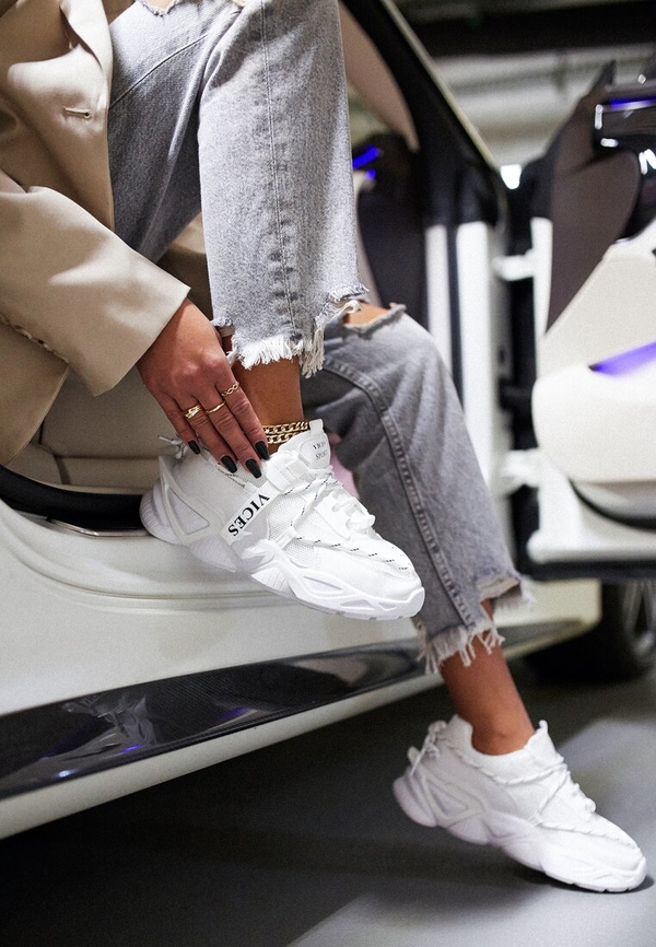 Opis Renee biała sukienka ribbons on sleeve Sneakersy Astemisia osadzone na grubej, nieregularnej podeszwie z efektownymi…