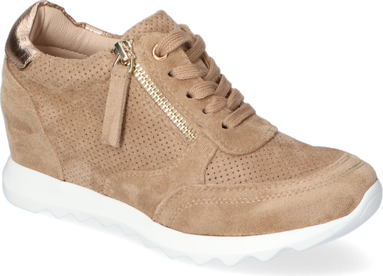 Eleganckie senakersy producenta M.Daszyński: – cholewka wykonana została z najlepszej jakości ekozamszu – wnętrze pokryte zostało skórą ekologiczną aby zapewnić komfort podczas użytkowania – wkładka wewnętrzna wykonana została ze skóry naturalnej – zamek błyskawiczny oraz sznurowadła ułatwiają zakładanie i dopasowanie obuwia – koturn o wys. 5,5 cm zapewnia stabilizację i nadaje elegancji – beżowy kolor oraz elegancki fason tworzą efekt, który zachwyci każdą kobietę!