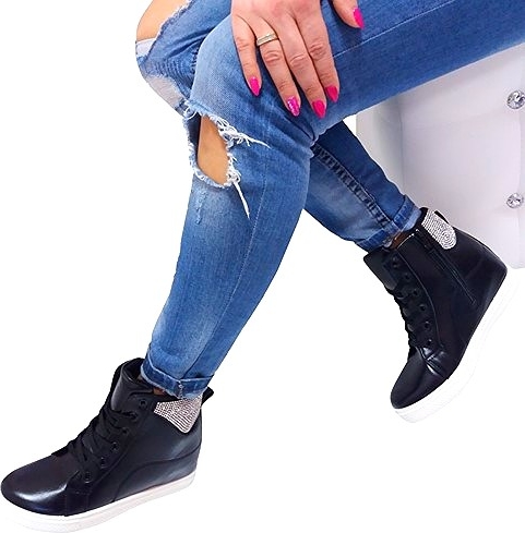 SNEAKERSY NA KOTURNIE W KOLORZE BLACK Obuwie: nowe Materiał: eco skóra Wkładka: tkanina Rodzaj obcasa: koturn Wysokość: za kostkę Zdobienie: cyrkonie Nosek: okrągły Ocieplenie: nie Zapięcie: sznurowane, zamek ROZMIAR 36 37 38 39 40 41 WKŁADKA (cm) 22,5 23 23,5 24 24,5 25 WYS.OBCASA (cm) 5 Prosimy o sugerowanie się długością wkładki umieszczonej w tabeli rozmiarów