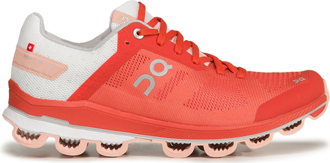 Czerwone buty sportowe On Running sznurowane z płaską podeszwą w sportowym stylu