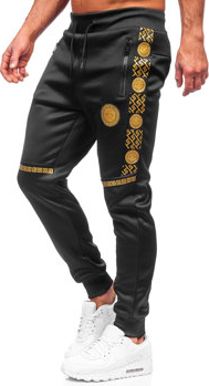 Opis Czarne spodnie sportowe Denley z bawełny w sportowym stylu Czarno-złote spodnie męskie dresowe Denley HM665 to…