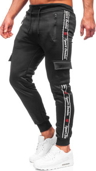 Opis Czarne spodnie sportowe Denley z dresówki Czarne ocieplane bojówki spodnie męskie dresowe Denley HW2203 są idealną…