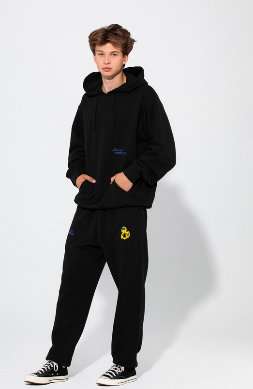 Opis Czarne spodnie sportowe LOCAL HEROES w sportowym stylu z dresówki Produkt Oversize – zalecamy wybór…